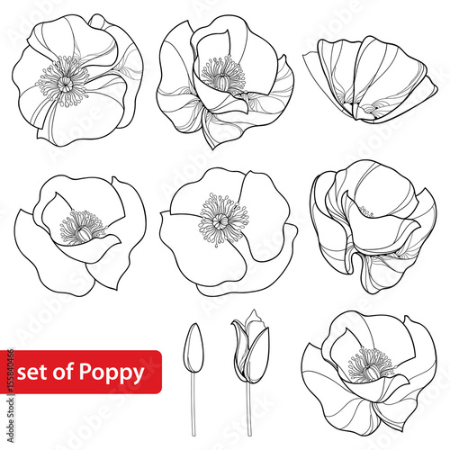 Obraz Wektorowy Ustawiajacy Z Konturu Makowym Kwiatem Paczkiem I