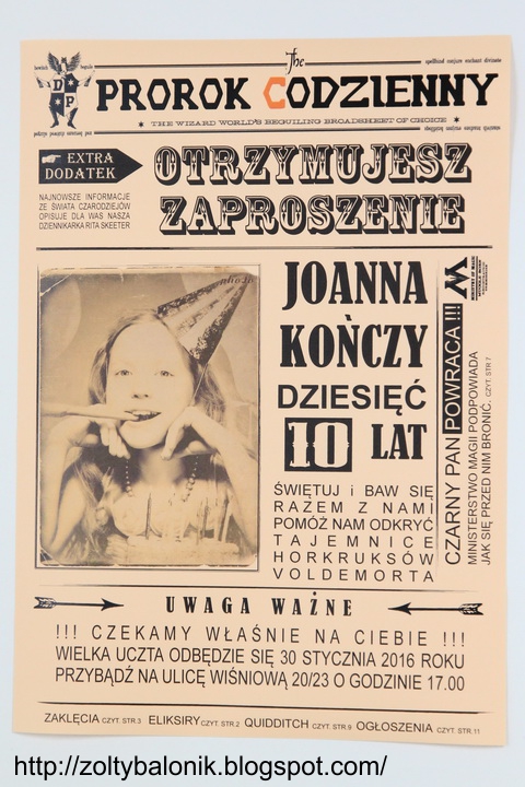Zolty Balonik Harry Potter Zolty Balonik Zaproszenie
